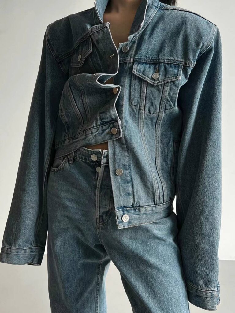 szerokie plecy Poduszki na ramiona Długi rękaw Zapięcie na guziki Oversize