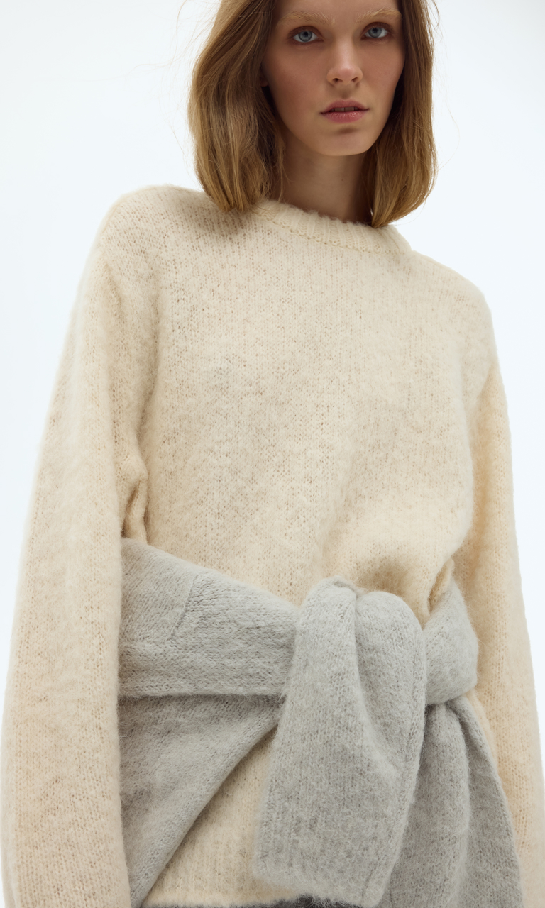 Wydłużony rękaw М’яка вовна Opuszczone ramie Długi włos