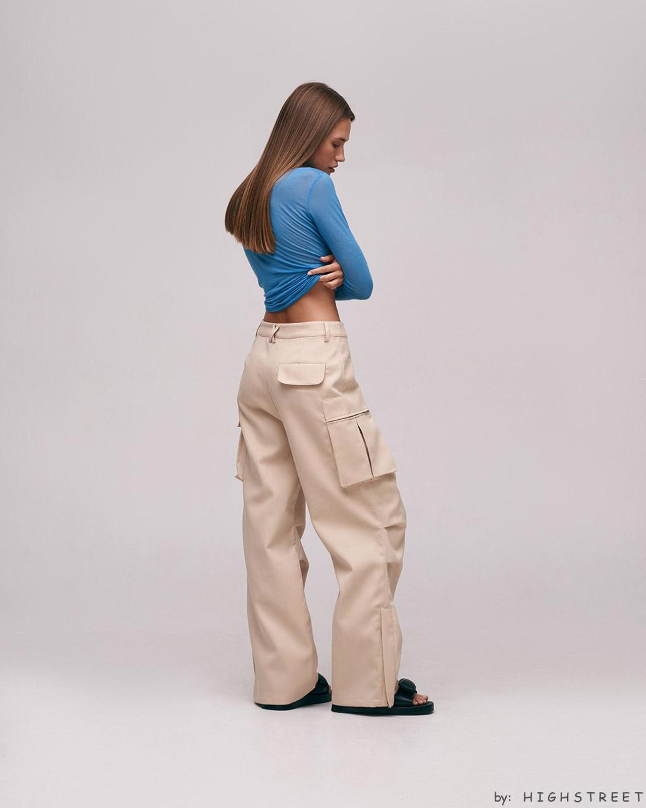 Swobodny krój Strukturalna tkanina Kieszenie cargo na nogawkach Bez podszewki