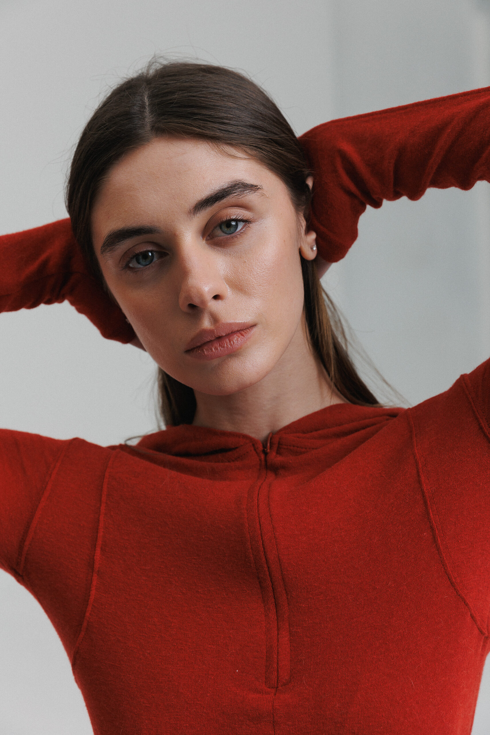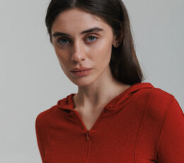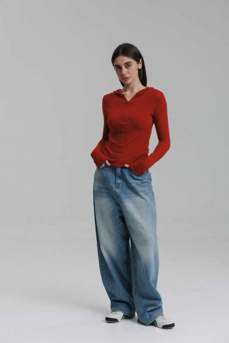 Lekka dzianina Półzamek Dopasowany krój Kaptur Długie rękawy