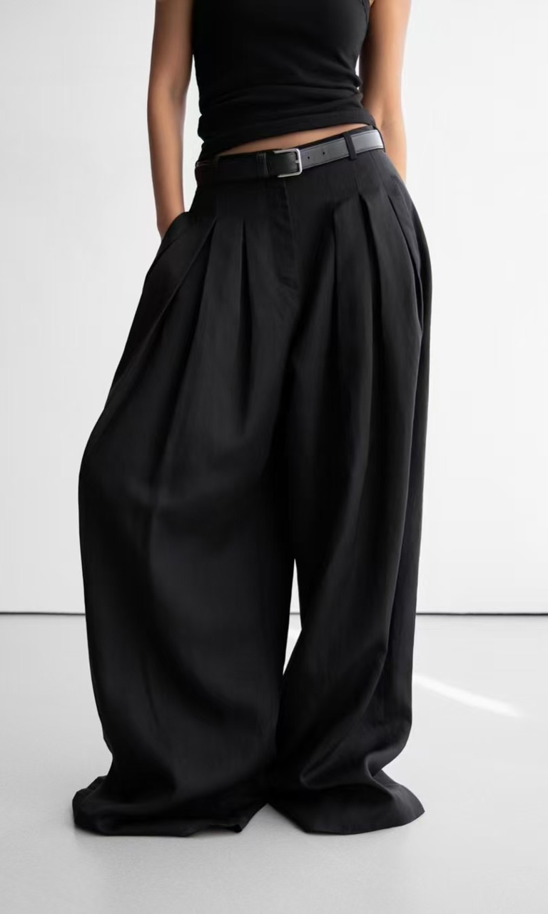 Pleat-front linen trousers