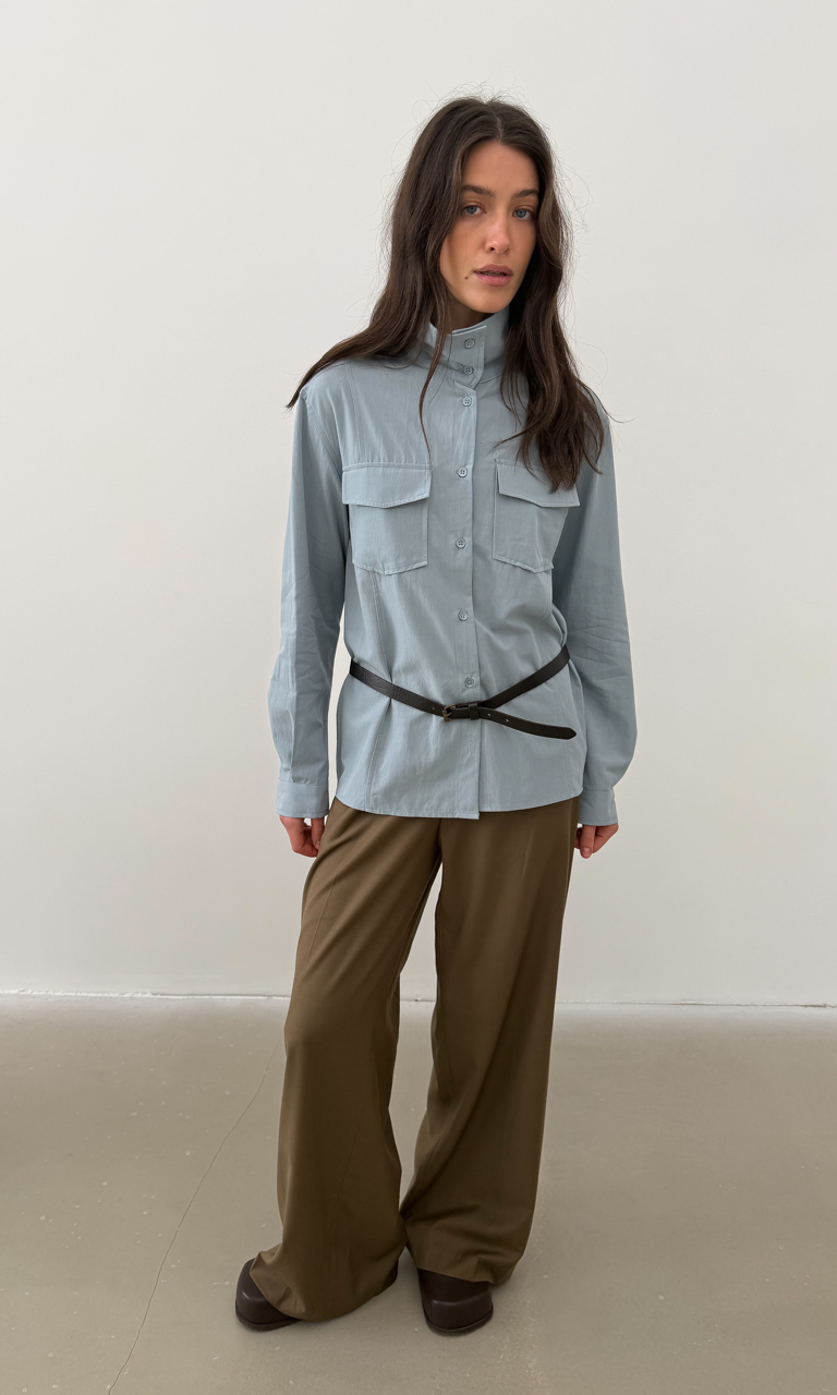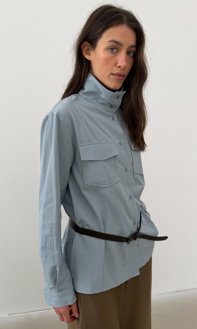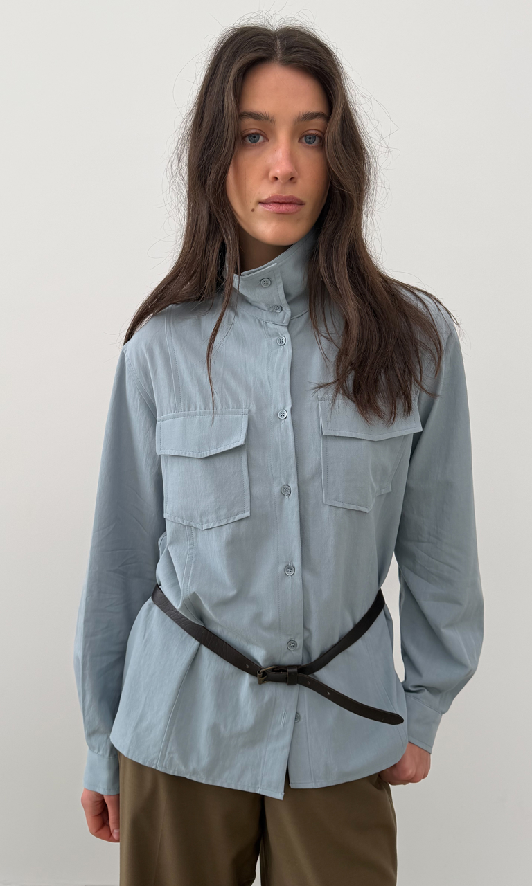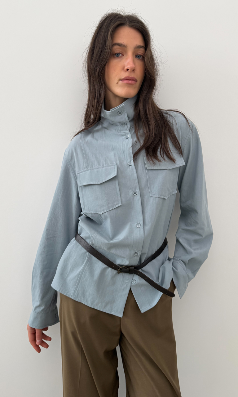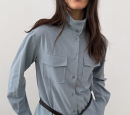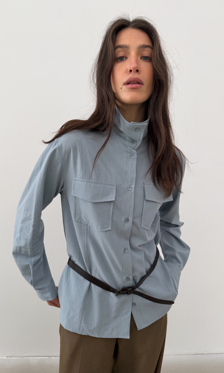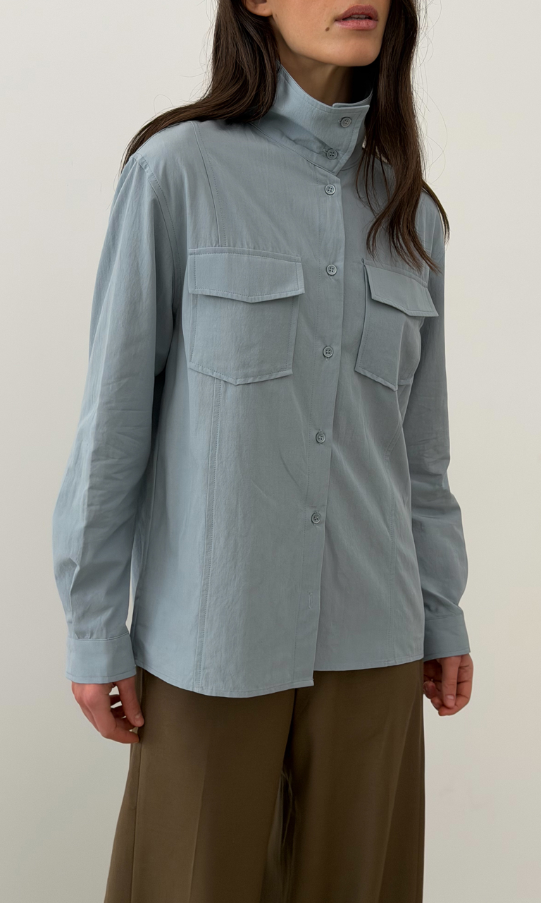 Високий комір Накладні кишені Легкий котон