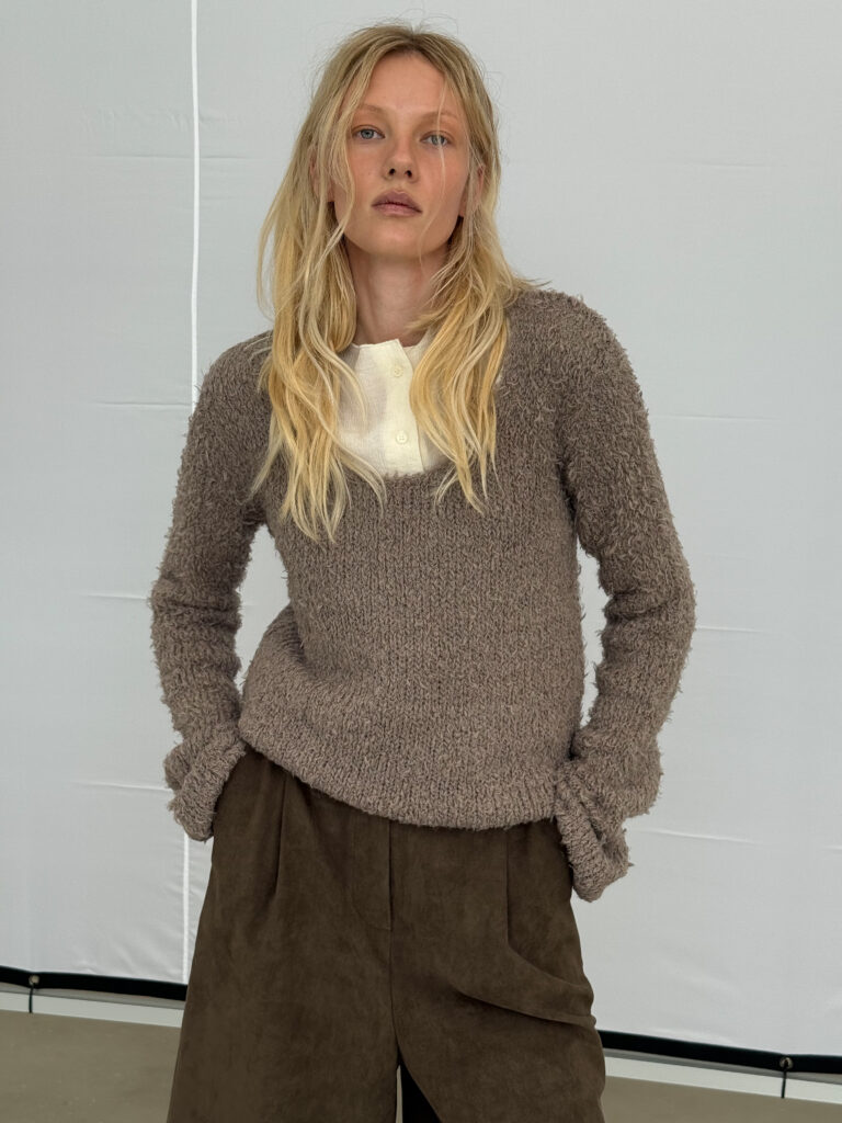 Круглий виріз Приталений крій Фактурна тканина Подовжений рукав
