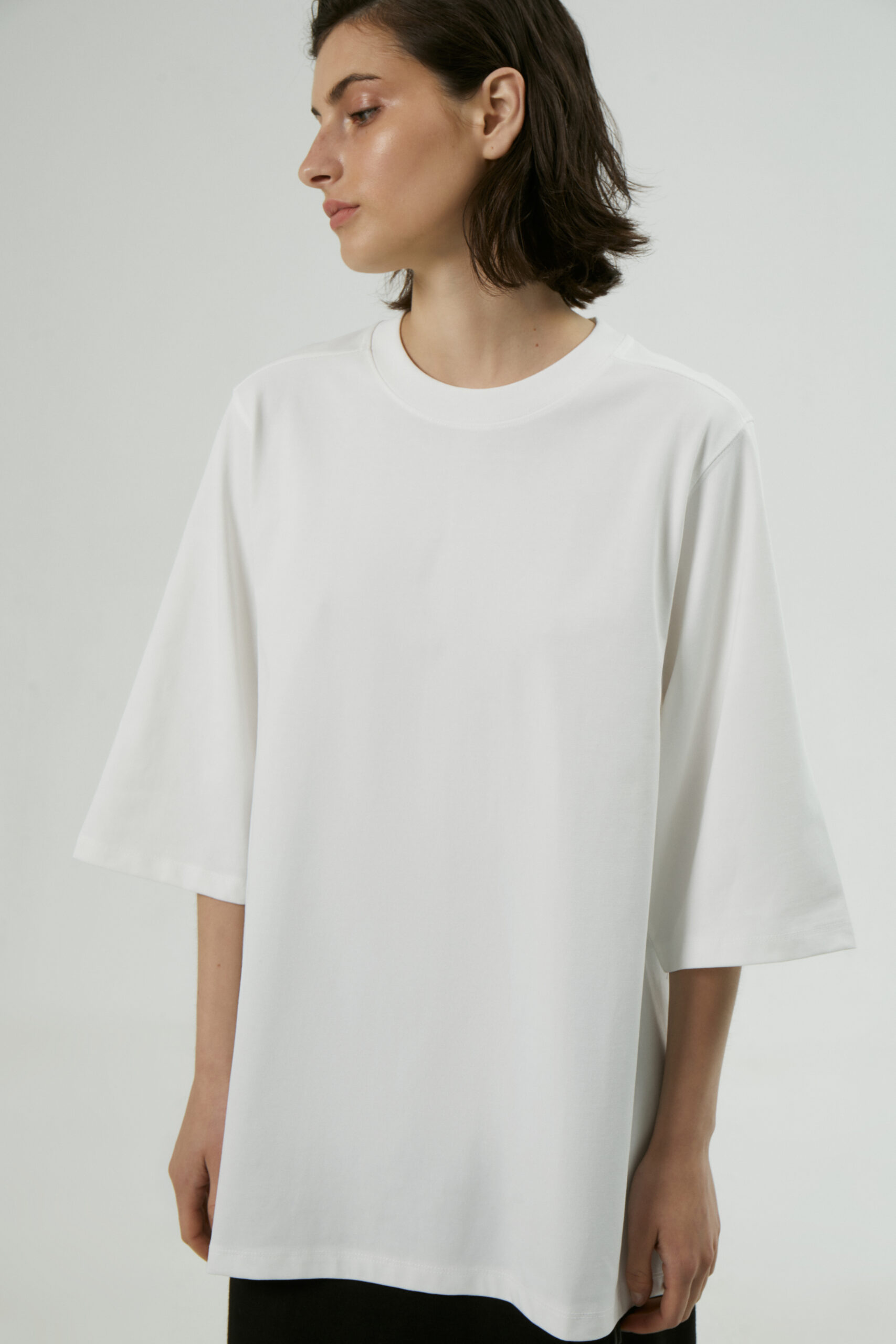 Подовжений рукав Щільна бавовна Круглий комір Вільний крій Розріз на спині
